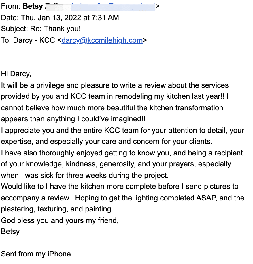 We have relied on the wealth of knowledge from Vanessa, Gideon, and Mike for over ten years through the process of remodeling our homes. Through an array of projects such as our master suites, bathrooms, basement and kitchen- The KCC team delivers!